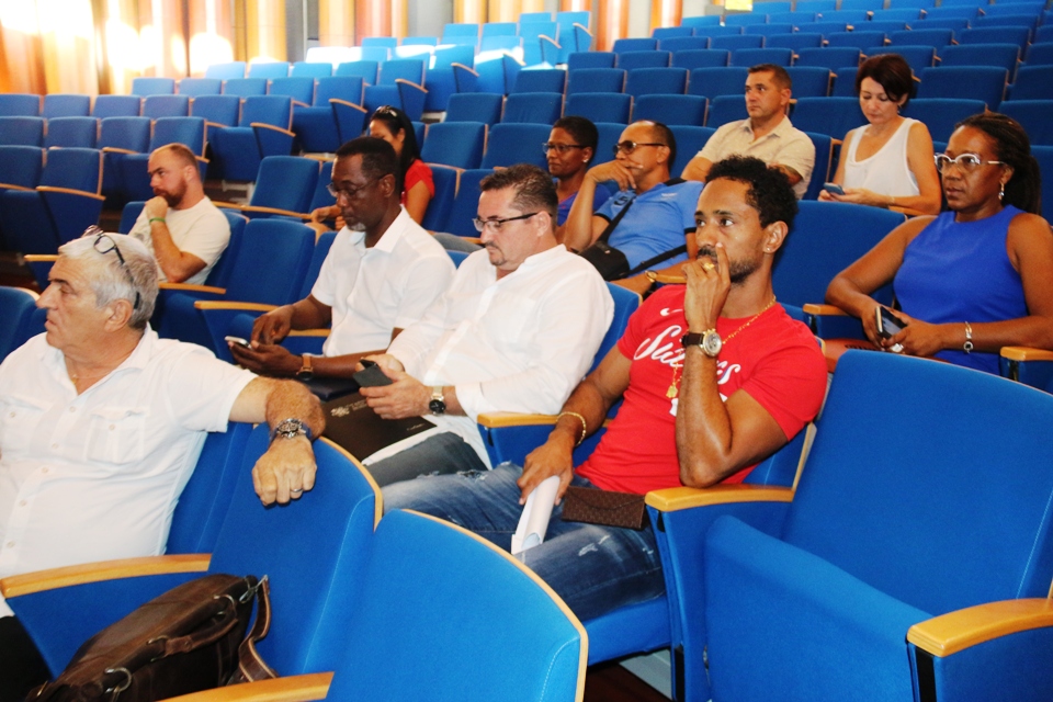 Dans le cadre des Assises du Sport lancées par la Préfecture de la Région Guyane et la Collectivité Territoriale de Guyane (CTG), les discussions se sont poursuivies ce vendredi 25 janvier 2019 à l’Amphithéâtre de l’Université de Guyane à Cayenne à l’occasion d’une table ronde Sport animée par trois Chargés d’études du Centre de Droit et d’Economie du Sport (CDES) ) sur la réalisation du Schéma Territorial de Développement du Sport de la Guyane avec le concours de la Direction de la Jeunesse, des Sports et de la Cohésion Sociale (DJSCS) et, en présence du Vice-Président de la CTG, Jean-Claude Labrador délégué au Sport et au Cadre de vie et de nombreux invités et représentants du monde du sport.