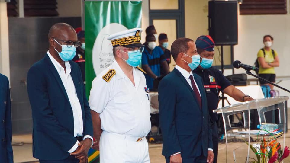Rodolphe Alexandre, président de la CTG et président du CA-SDIS Guyane, Thierry Queffelec, préfet de la Guyane, Georges Patient, sénateur et vice-président du Sénat, Lénaïck Adam, député, Serge Smock, président de la CACL et maire de la ville de Matoury, Marie-Laure Phinéra Horth, sénatrice, Albéric Benth, maire de la commune de Mana, Jean-Paul Fereira, maire d’Awala-Yalimapo, les conseillers territoriaux François Ringuet, président de la CCDS et maire de Kourou, Céline Régis également maire d’Iracoubo, Jacquelin Marius, Hervé Robineau, Elaine Jean, Denis Galimot, Pierre Désert, Anne-Marie Read, le Colonel Frédéric Robert, directeur du SDIS Guyane, les sapeurs-pompiers mananais et saint-laurentais.
