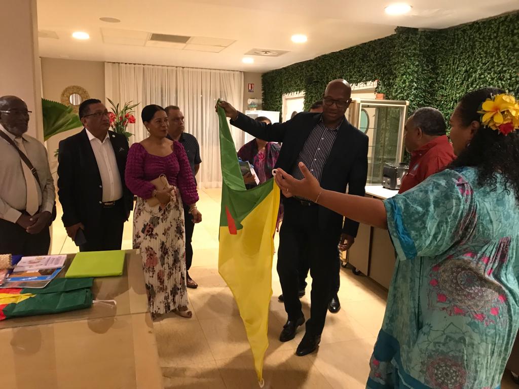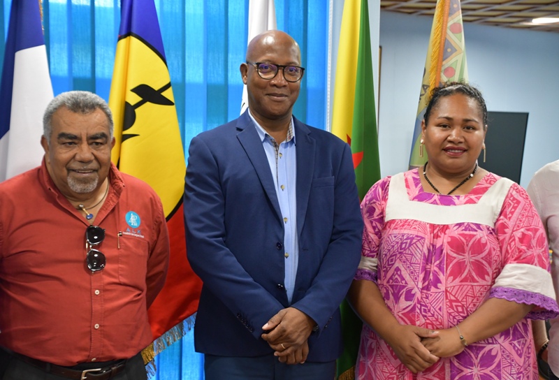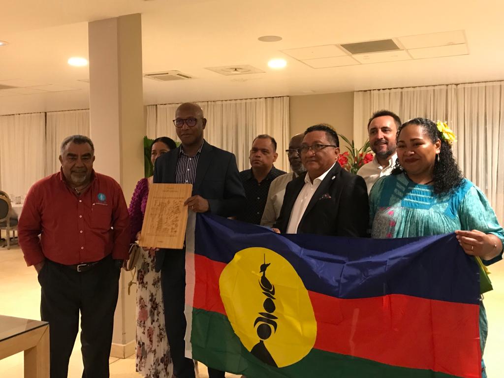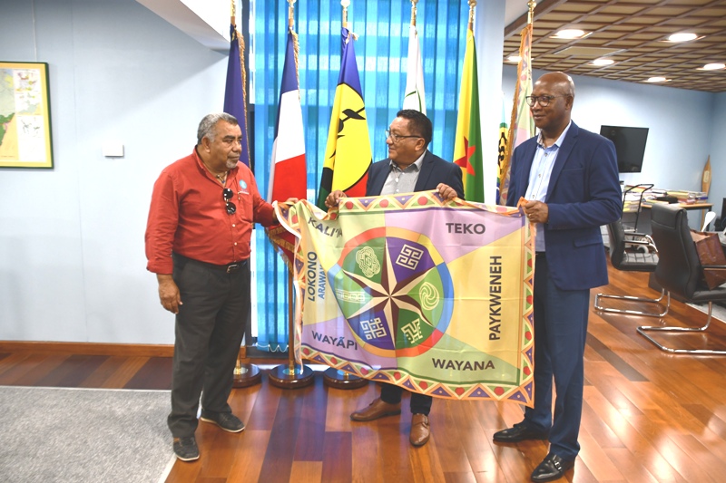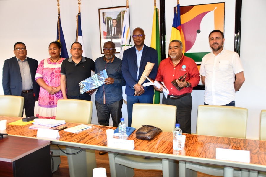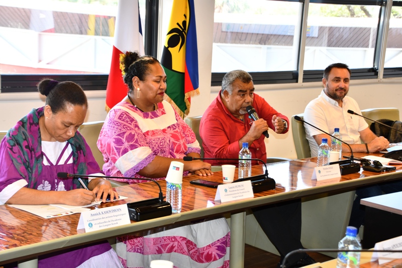 La délégation composée de Laurie Humuni, présidente du Conseil d’Administration de l’Académie des Langues Kanak, Weniko Ihage, directeur de l’Académie des Langues Kanak, Olivier Fandos, coordonnateur du service de l’enseignement des langues Kanak du vice-rectorat de la Nouvelle Calédonie et Annick Kasovimoin, coordinatrice des actions linguistiques et culturelles de l’Académie des langues Kanak a ainsi échangé avec Gabriel Serville, président de la Collectivité Territoriale de Guyane (CTG), Bruno Apouyou, et Sylvio Van Der Pijl, respectivement président et vice-président du Grand Conseil Coutumier, et Jocelyn Thérèse, conseiller territorial, délégué aux relations avec les Peuples Autochtones. Ce partage d’expérience sur la préservation et la valorisation des langues régionales comme marqueur identitaire, ouvre des perspectives sur la création d’une Académie des Langues de Guyane.