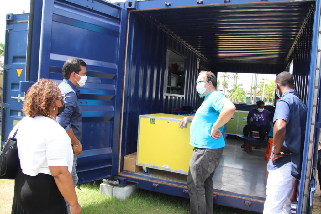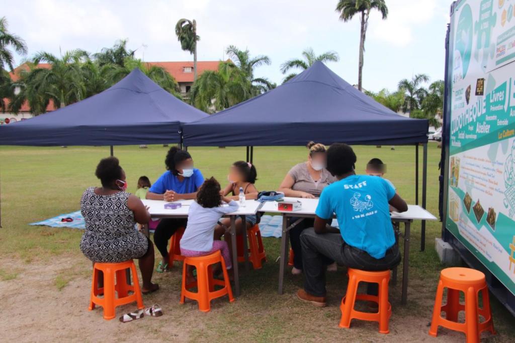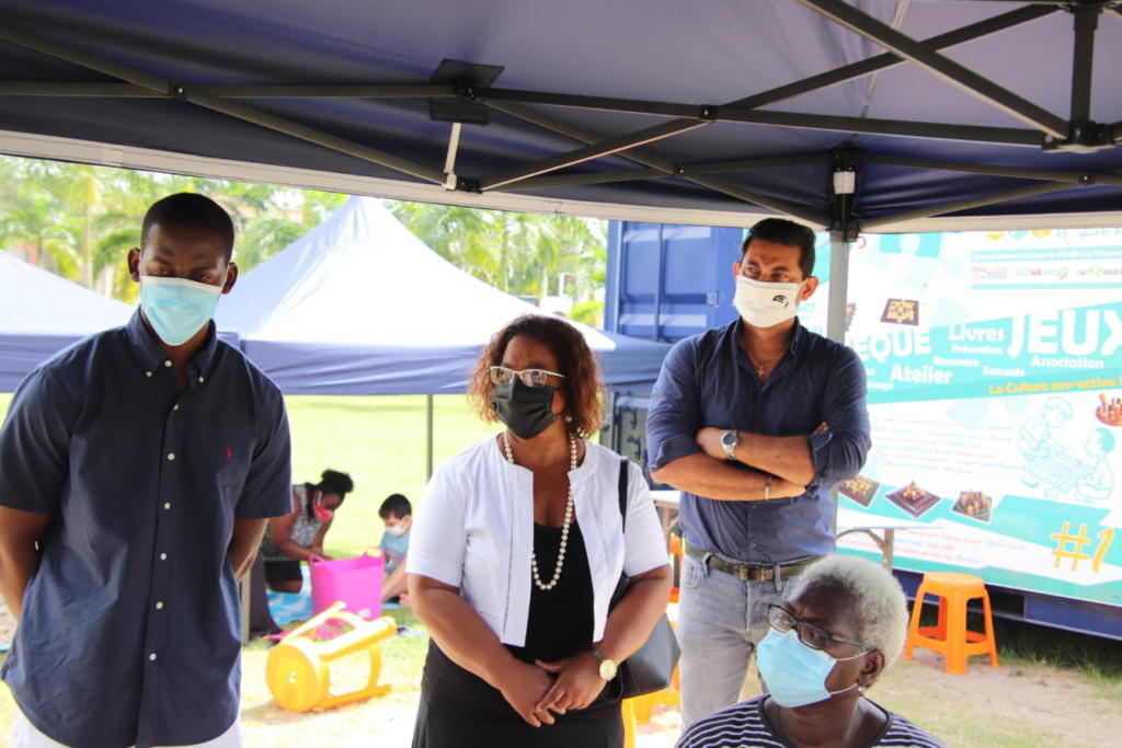Quatre jours après l’installation du dispositif, une délégation d’élus de la CTG composée de Rolande Chalco-Lefay, d’Alex Madeleine et de Jacquelin Marius est allée à la rencontre des équipes, et des enfants accueillis, accompagnée du personnel de la bibliothèque territoriale. L’occasion d’un échange nourri sur des perspectives de projets communs, autour du livre et des animations et loisirs jeunesse