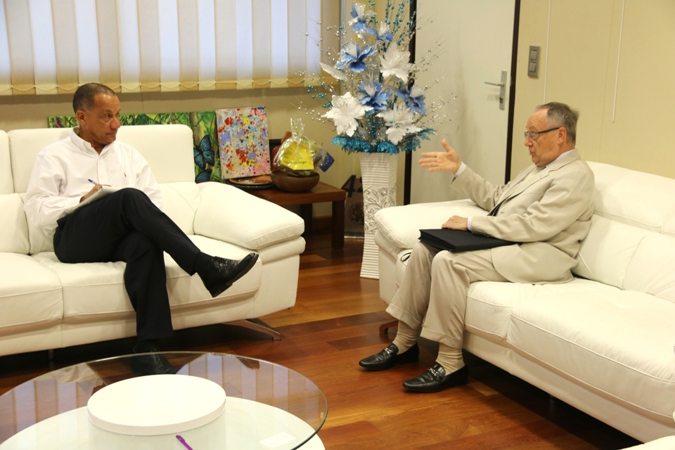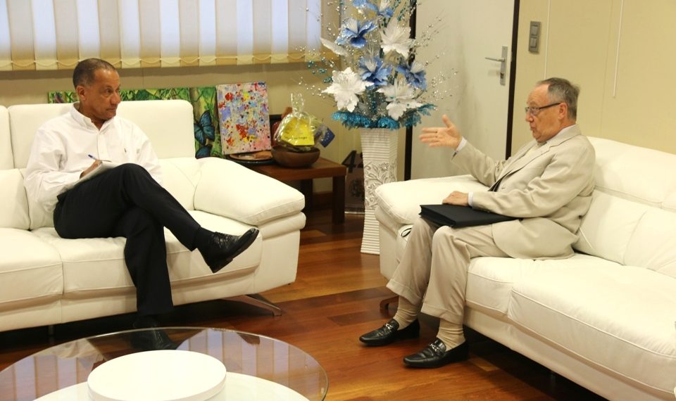 Nommé « Garant » du processus de concertation d’une centrale de production hybride en Guyane, par la CNDP (Commission Nationale du Débat Public), Philippe Marland Préfet de Région honoraire s’est entretenu avec le Président de la Collectivité Territoriale de Guyane (CTG), Rodolphe Alexandre, ce mercredi 28 février 2018, sur le projet « PROMETHE » relatif à la dite centrale hybride, porté par le maître d’ouvrage EDF-PEI (Production Électrique Insulaire), à l’occasion d’une mission de neuf jours dans notre département.