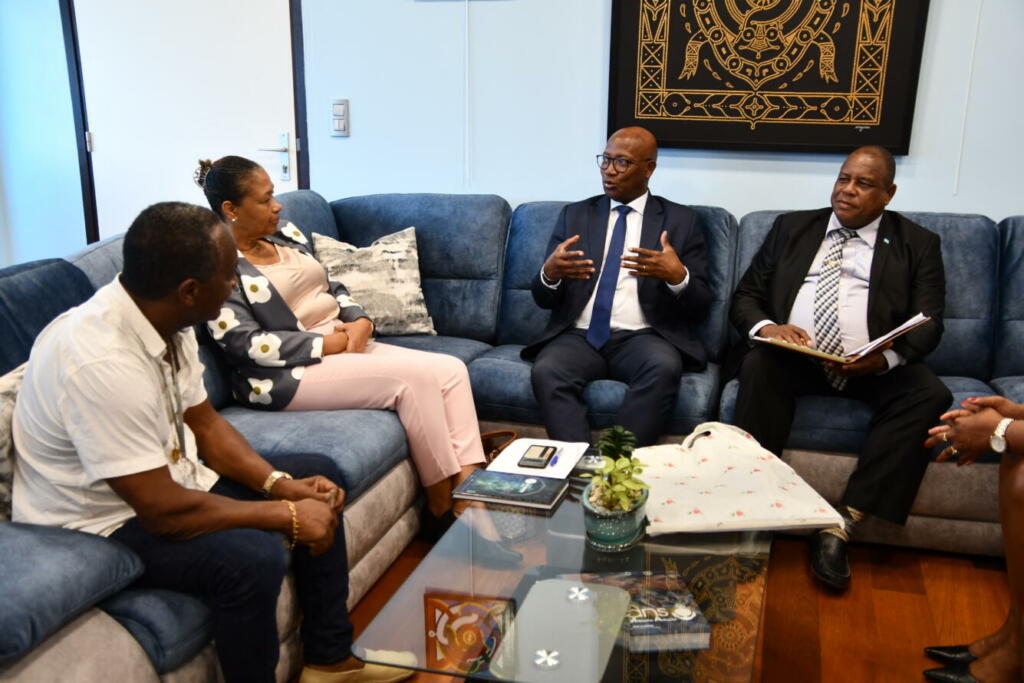Ce lundi 11 décembre 2023, son Excellence Julian Dubois, Ambassadeur en charge des Relations avec la diaspora sainte-lucienne accompagné d’Allisson Joseph, Consule Générale de Sainte-Lucie pour les Antilles-Guyane a effectué une visite de courtoisie auprès de Gabriel Serville, Président de la Collectivité Territoriale de Guyane, assisté de Patrick Cosset et Sherly Alcin Conseiller Territoriaux à l’Hôtel Territorial.