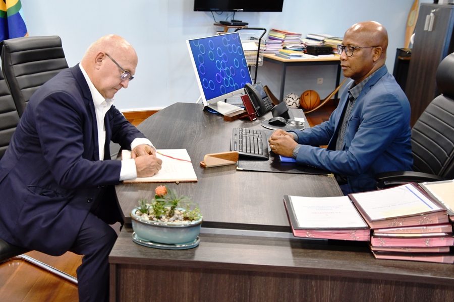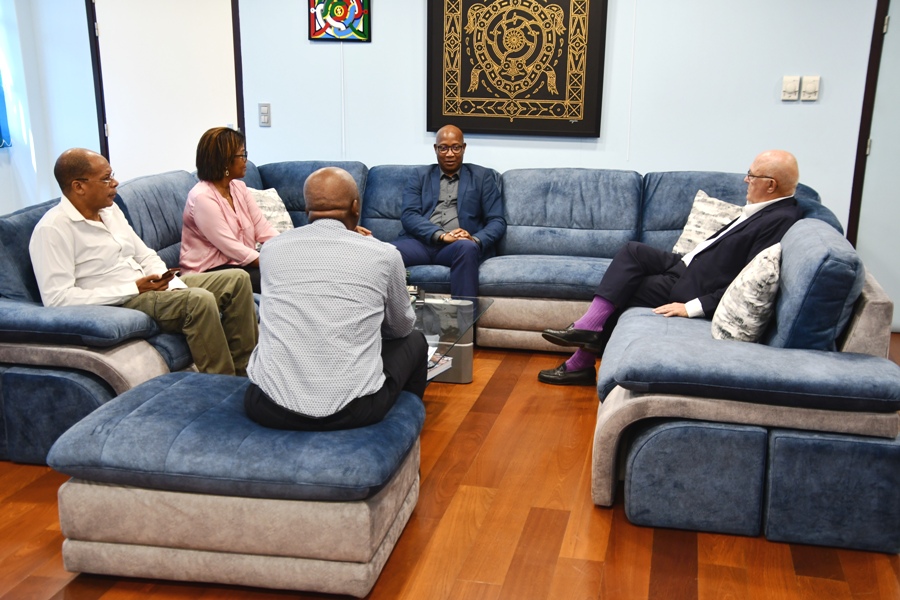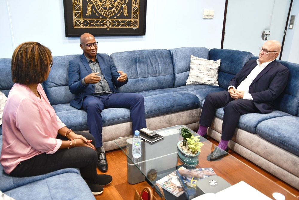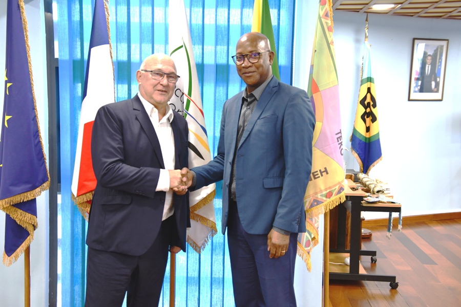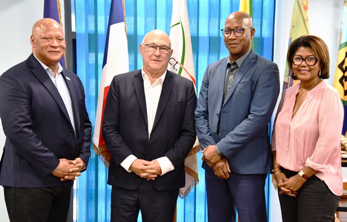 A l’occasion de sa visite en Guyane, Michel Sapin, ancien ministre de l’économie et des finances, a été reçu par Gabriel Serville, président de la Collectivité Territoriale de Guyane (CTG) en présence de Jean-Luc Le West, vice-président de la CTG, délégué au développement économique et au tourisme, de Marie-Lucienne Rattier, conseillère territoriale en charge du numérique, de la transformation digitale et de l’innovation, ce lundi 27 novembre 2023, à l’Hôtel territorial.