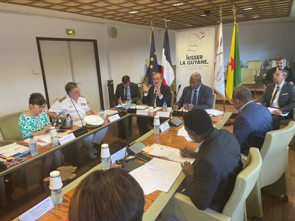 Dans le cadre de la visite ministérielle du ministre délégué aux Outre-Mer, la matinée du 18 janvier 2023 était consacrée à une séance de travail sur plusieurs dossier majeurs pour le territoire parmi lesquels le contrat de convergence territorial ou encore le premier Conseil Interministériel des OutreMer. Cette rencontre se tenait en présence de Gabriel Serville, président de la Collectivité Territoriale de Guyane, et de plusieurs élus territoriaux.