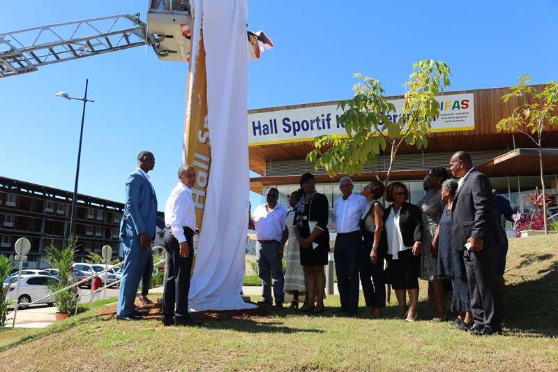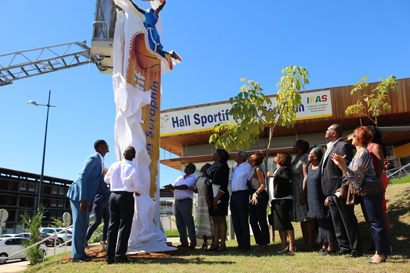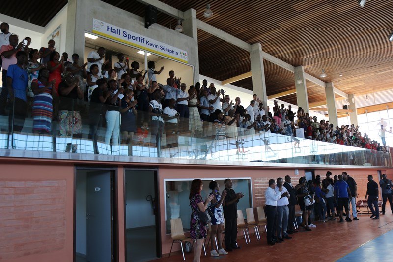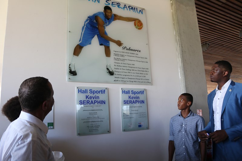 À l’occasion du retour au pays du basketteur Guyanais de renommée internationale, Kévin Seraphin, était inauguré, ce samedi 1er juillet 2017, en présence notamment du Président de la Collectivité Territoriale de Guyane, Rodolphe Alexandre, de ses Vice-présidents, Jean-Claude Labrador, délégué au Sport et au Cadre de Vie et Rolande Chalco-Lefay, déléguée à la Culture, aux Patrimoines et aux Identités et membre de la commission sport, des Conseillères Territoriales Emilie Ventura et Céline Régis, et du Directeur de l’IFAS, André Pamphile. La famille, les amis et admirateurs du sportif de haut niveau étaient également présents pour l’inauguration de ce tout nouveau hall sportif qui porte son nom, le hall Kévin SERAPHIN, situé au Campus de Troubiran.
