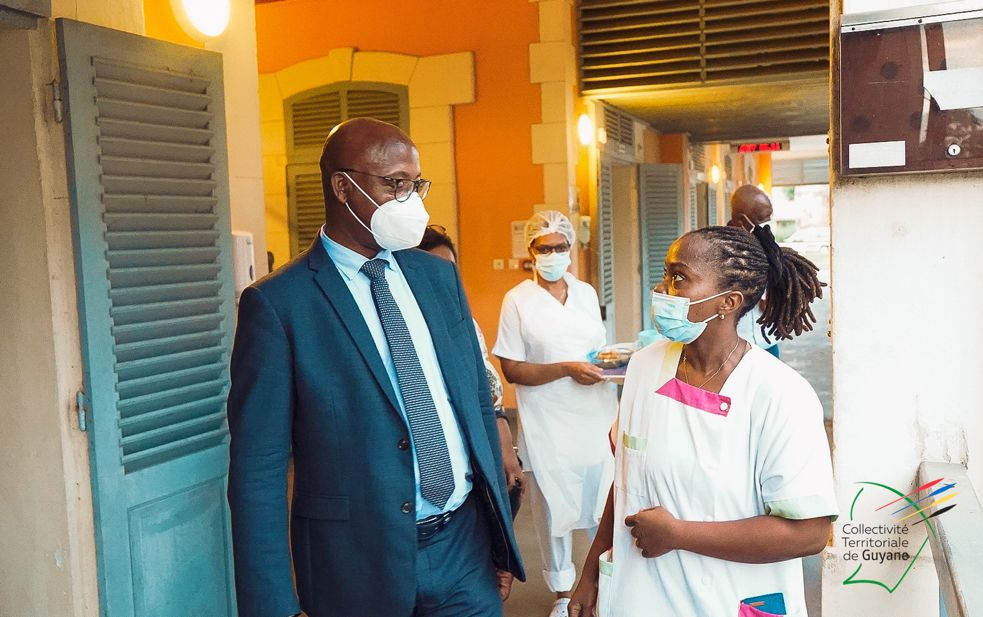 Dans le cadre d’un déplacement dans l’ouest du territoire, Gabriel Serville, président de la Collectivité Territoriale de Guyane s’est rendu à l’EHPAD de la ville de Saint-Laurent du Maroni en présence de Sophie Charles, maire de la capitale de l’Ouest et présidente de la Communauté des communes de l’Ouest Guyanais et d’une délégation d’élus territoriaux, parmi lesquels Samantha Cyriaque, 8è vice-présidente déléguée à l’autonomie et au handicap.