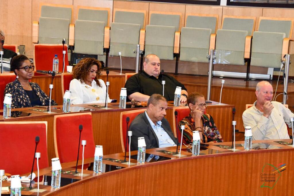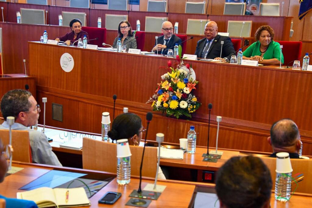 Une réunion présidée par Jean-Luk Le West, vice président délégué au développement économique et au tourisme, en présence d’Ariane Fleurival, présidente du Cesece Guyane, d’Anne-Marie Couderc, ancienne ministre de l’emploi, d’Hélène Sirder, membre du Cese, de Nassim Larfa, conseiller du président en charge des relations parlementaires et territoires.