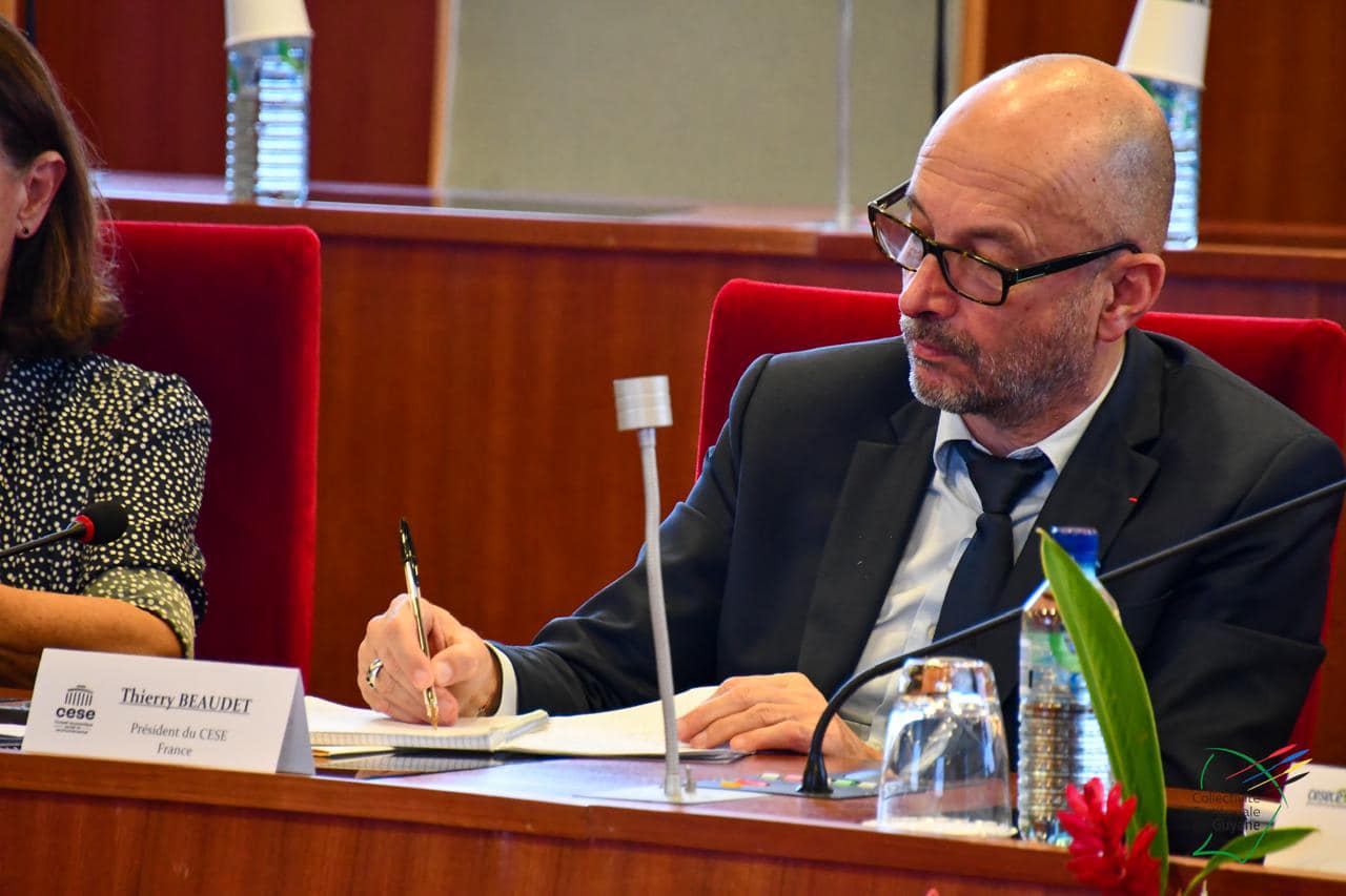 Thierry Beaudet, président national du CESE a indiqué vouloir accompagner au mieux le territoire guyanais lors de sa prise de parole :