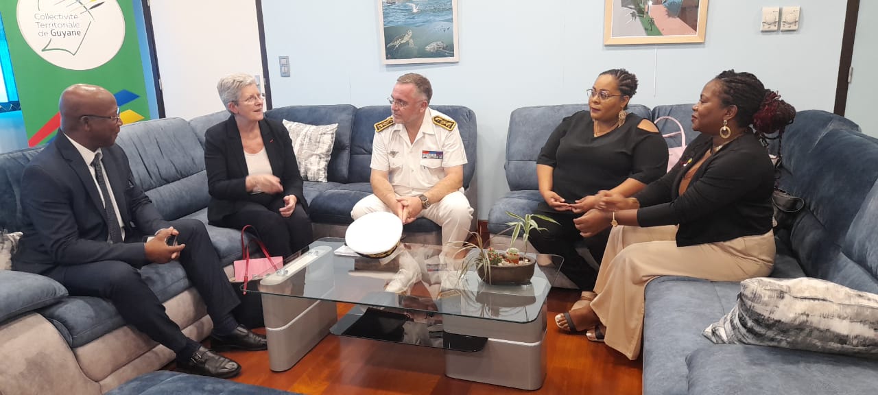 Dans le cadre d’une réunion de travail qui s’est tenue à l’issue de l’entretien protocolaire, les élus présents (notamment Samantha Cyriaque, 8ème Vice-présidente de la Collectivité Territoriale de Guyane déléguée à l’Autonomie et au Handicap et Keena Perlet, Conseillère territoriale déléguée au Logement, Cadre de vie et Modes d’habiter) se sont exprimées sur la question du diagnostic partagé. Samantha Cyriaque a rappelé la nécessité de mieux prendre en compte les populations de l’intérieur dans le diagnostic et l’accompagnement du handicap. Keena Perlet a pour sa part, insisté sur le rôle de l’école dans la politique en faveur de l’inclusion et sur les besoins en accompagnement renforcé en fonction de la géographie.