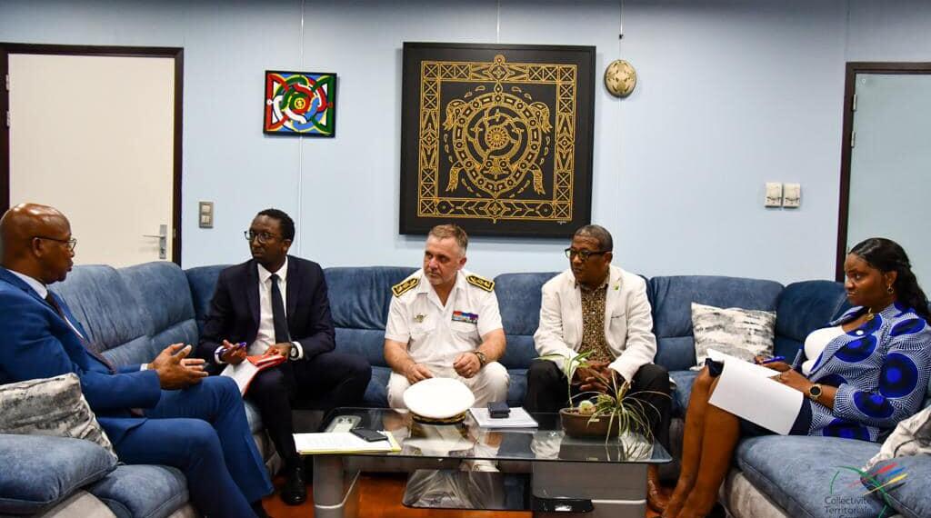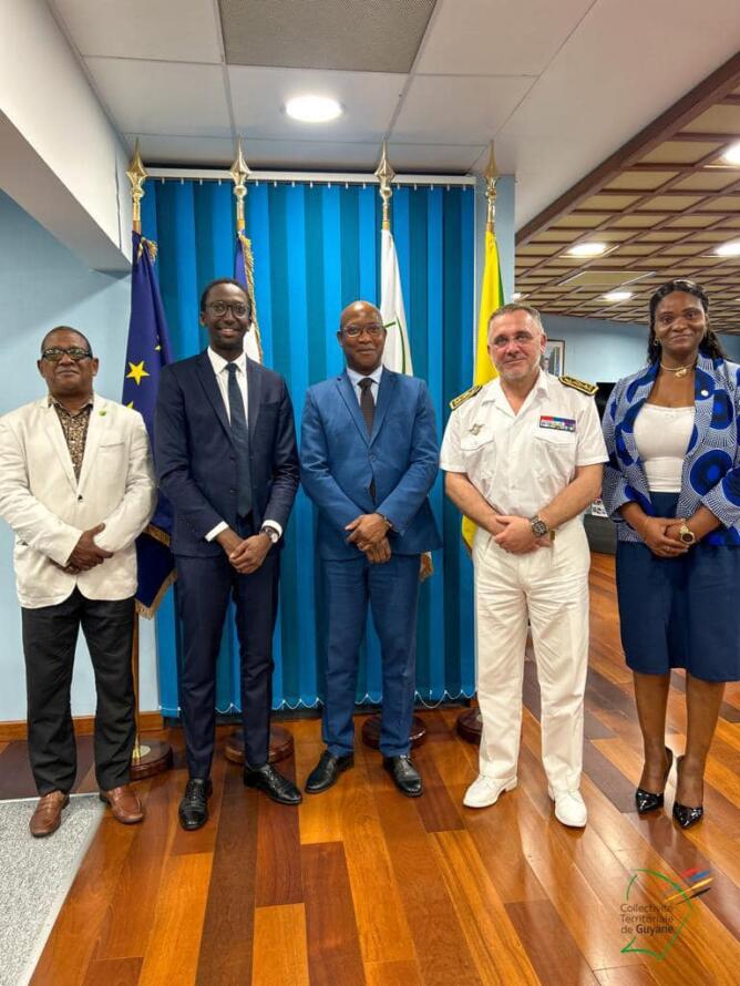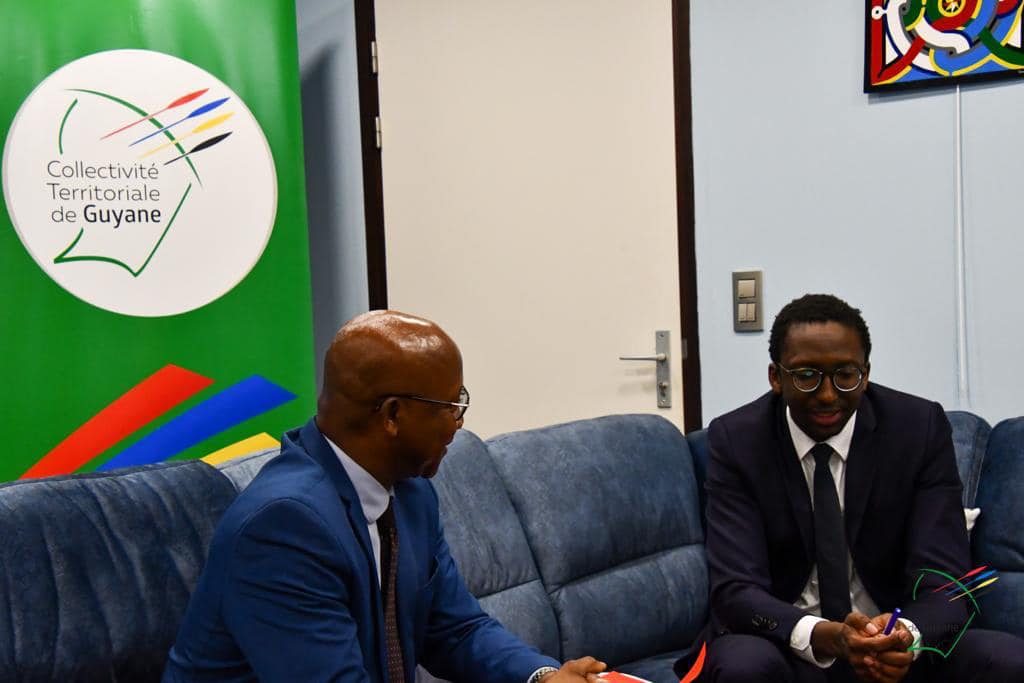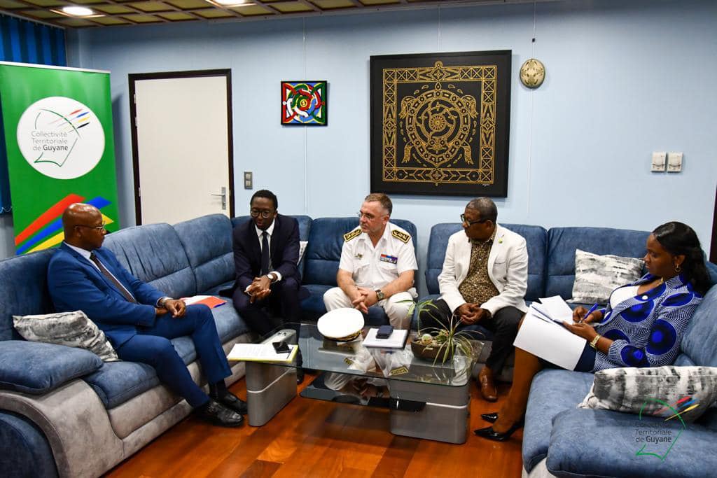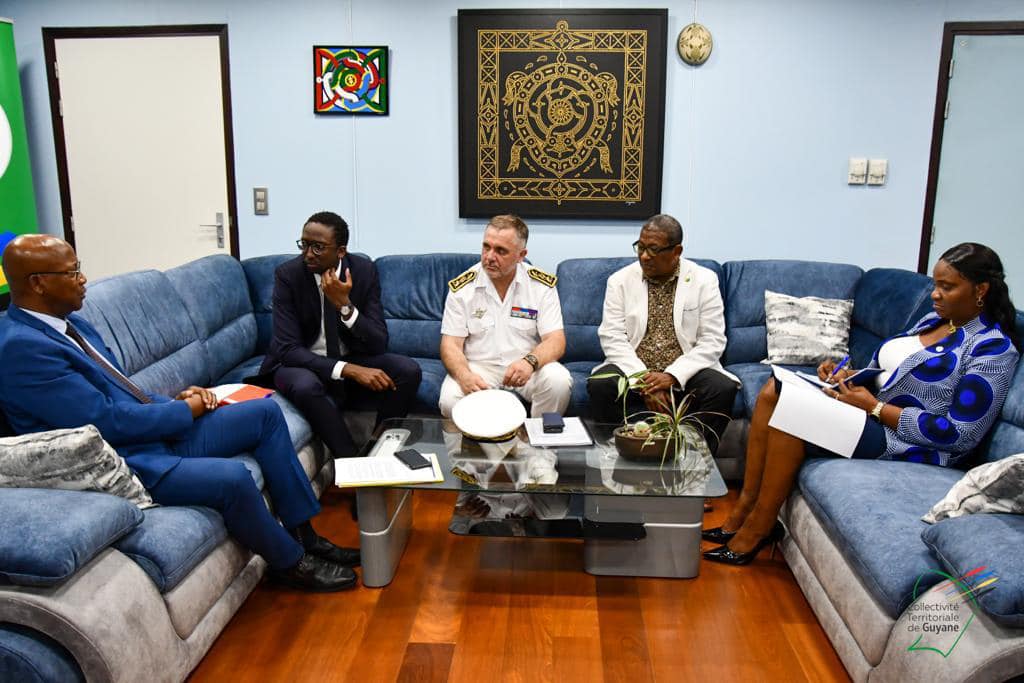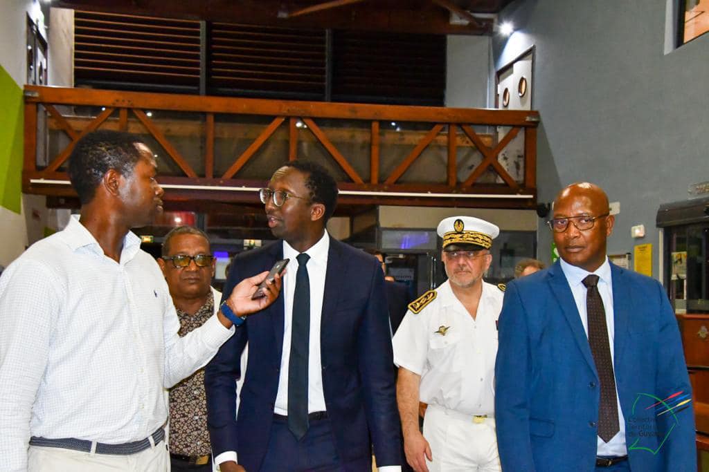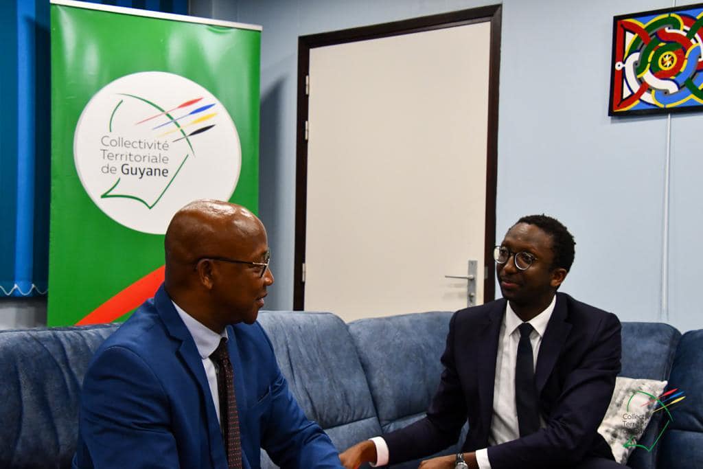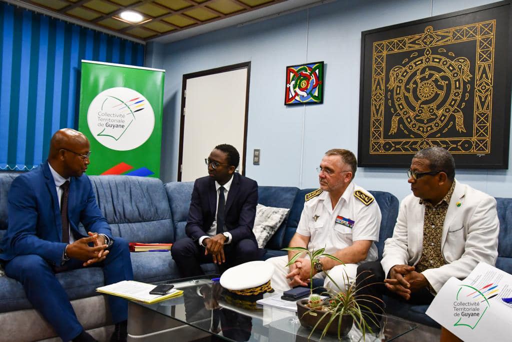 Ce mardi 2 mai 2023, Gabriel Serville, président de la Collectivité Territoriale de Guyane, rencontrait Hervé Berville, Secrétaire d’État, chargé de la Mer, en présence de Roger Aron, 7è vice-président, délégué à la pêche et à la souveraineté alimentaire, de Sherly Alcin conseillère territoriale déléguée à l’éducation à l’environnement, et Thierry Queffelec, préfet de Guyane.