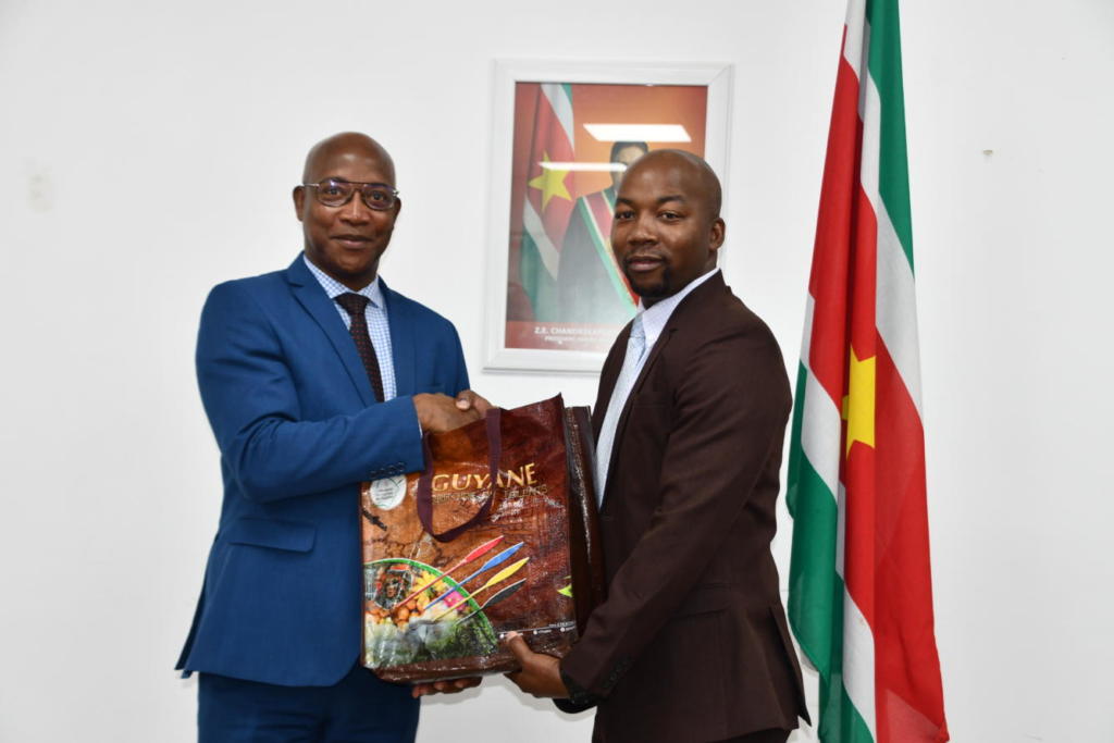 Toujours dans le cadre son déplacement officiel au Suriname, Gabriel Serville, Président de la Collectivité Territoriale de Guyane(CTG) a rencontré Parmanand Sewdien, ministre de la pêche et de l’agriculture.
