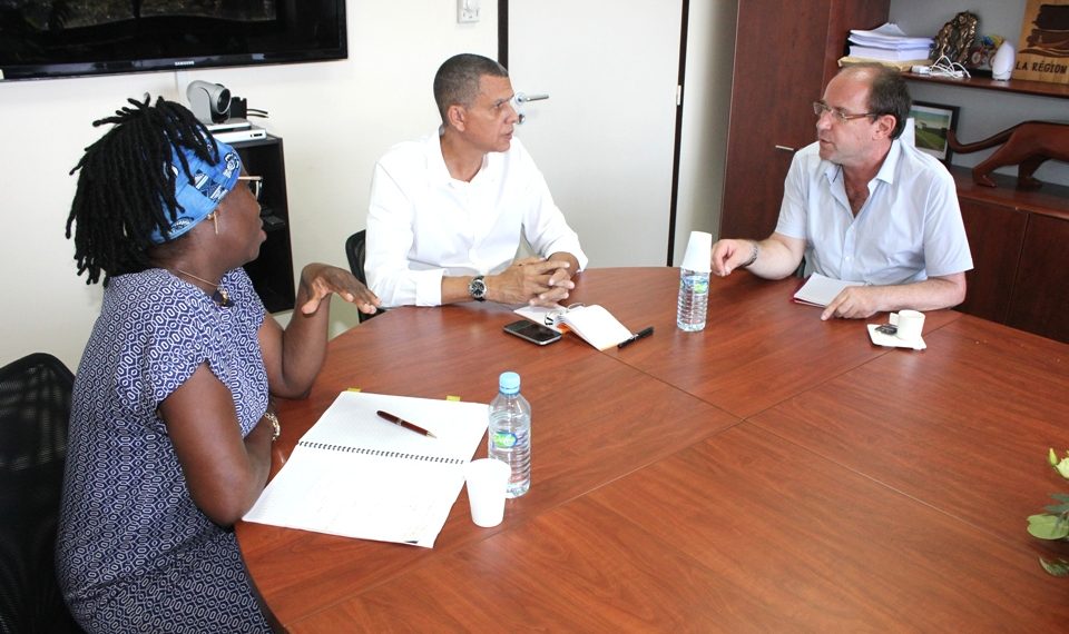 Ce vendredi 17 novembre 2017, le vice-président de la Collectivité Territoriale de Guyane (CTG), Claude Plénet délégué à l’Education, l’Apprentissage et la Formation professionnelle recevait le vice-président national de l’Association de Parents d’Elèves de l’Enseignement Libre, Jean-François Hillaire accompagné de la déléguée régionale, Nicole Palcy présidente de l’APEL Guyane à l’hôtel territorial à Cayenne.