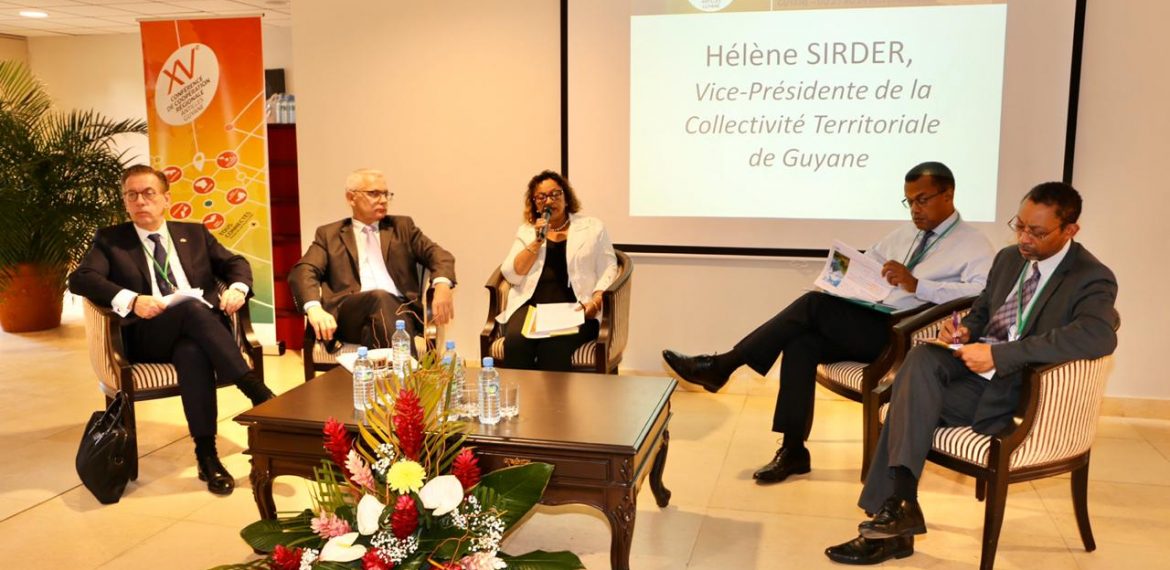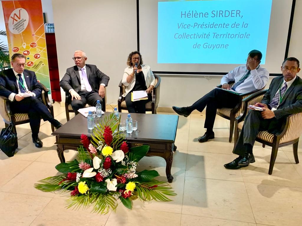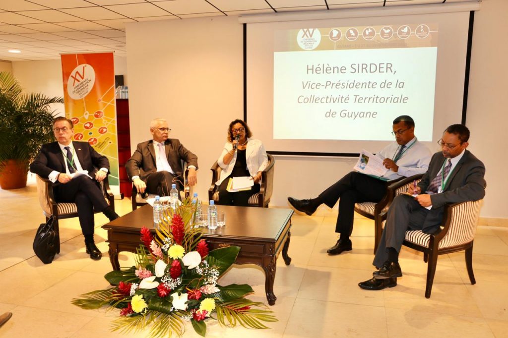 Les travaux de la XVè Conférence de Coopération Régionale Antilles Guyane se poursuivent ce matin au Mercure Royal Amazonia, pour le troisième et dernier jour de travaux dédié à l’environnement et à la formation en mobilité, en présence de la 1ère Vice-Présidente de la Collectivité Territoriale de Guyane, déléguée au Développement Durable, Mines et Énergies, Hélène Sirder.