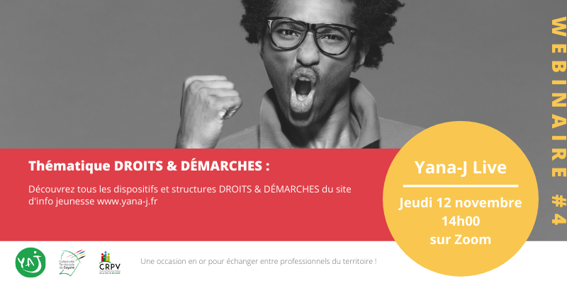 [Yana-J live] Le 4ème webinaire pour les professionnels aura lieu ce jeudi 12 novembre 2020, de 14h à 15h, sur la thématique “Droits et Démarches” !