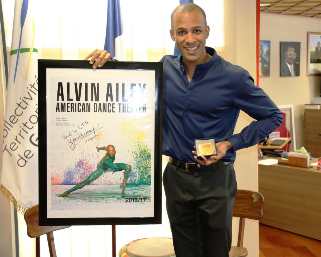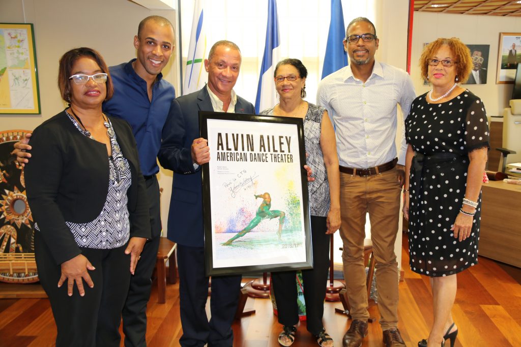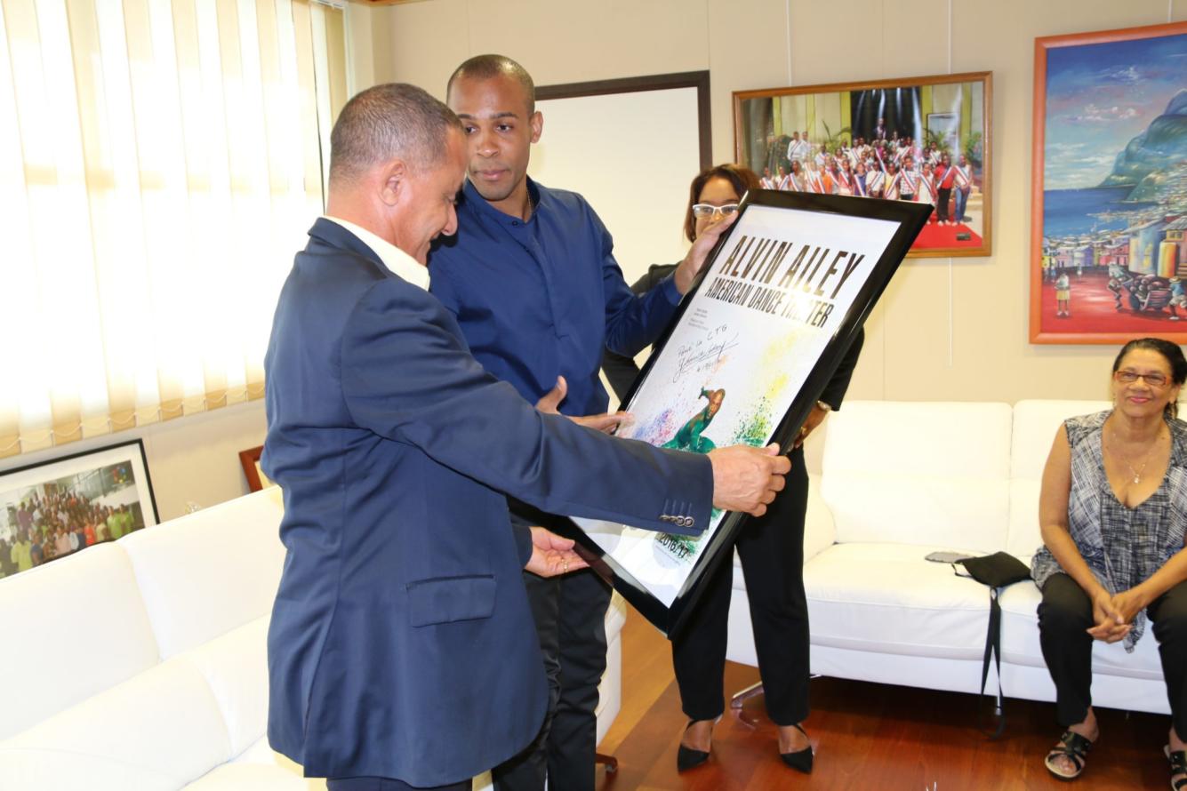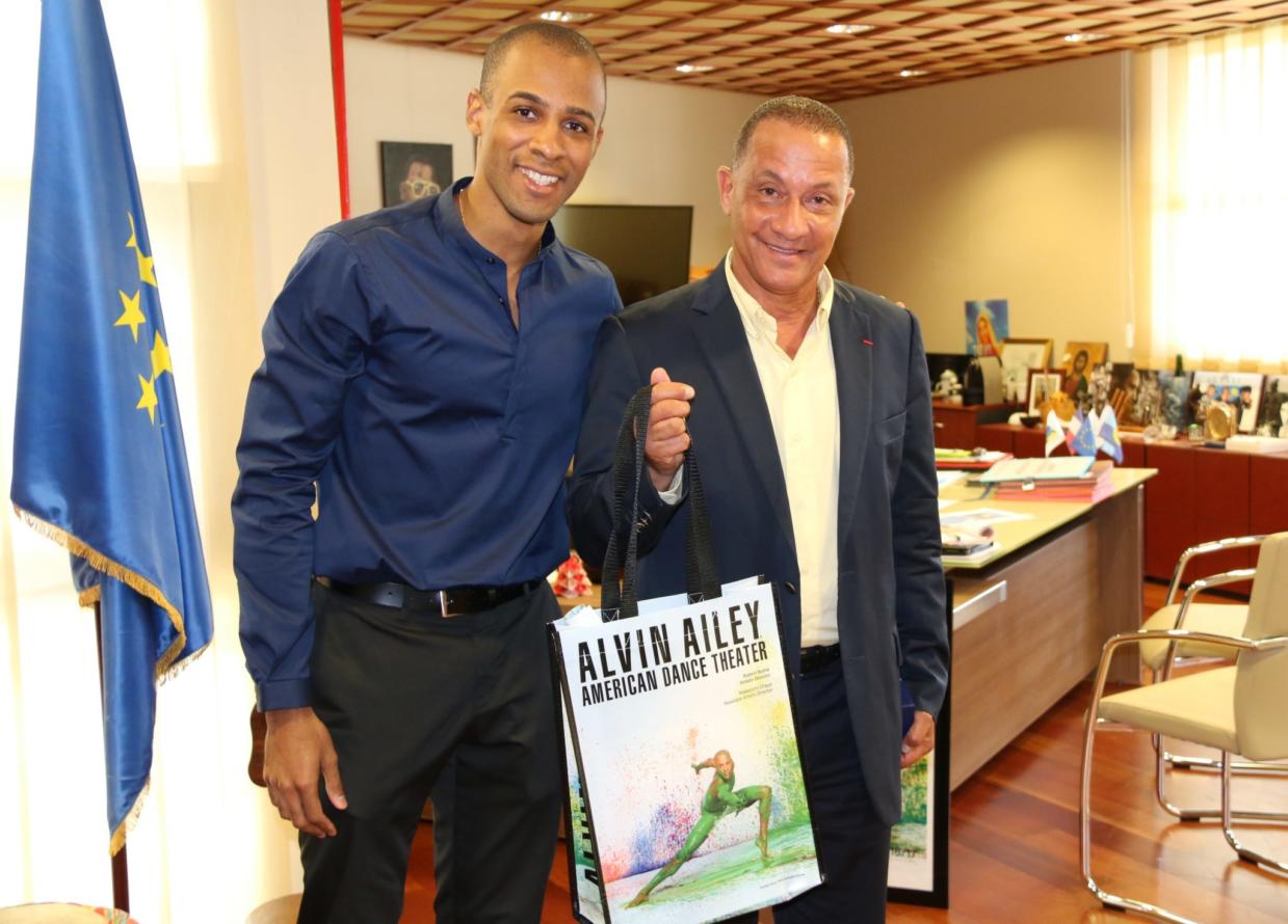 En présence de sa 9ème vice-Présidente déléguée à la Culture, au patrimoine et aux identités, Rolande Chalco-Lefay, Rodolphe Alexandre recevait Yannick Lebrun accompagné de sa mère, de la Présidente de l’Adaclam, Jeanine Vérin et de Keita Stephenson. Ils ont pu échanger notamment sur ses dernières représentations, ses futurs projets, ou encore son souhait de voir un jour la compagnie Alvin Ailey se produire en Guyane.