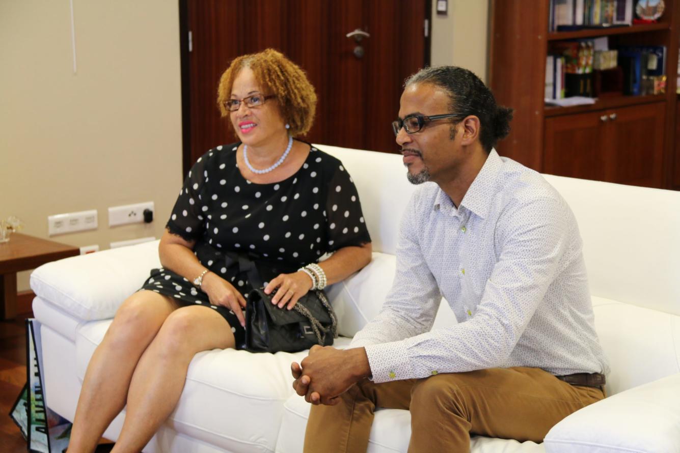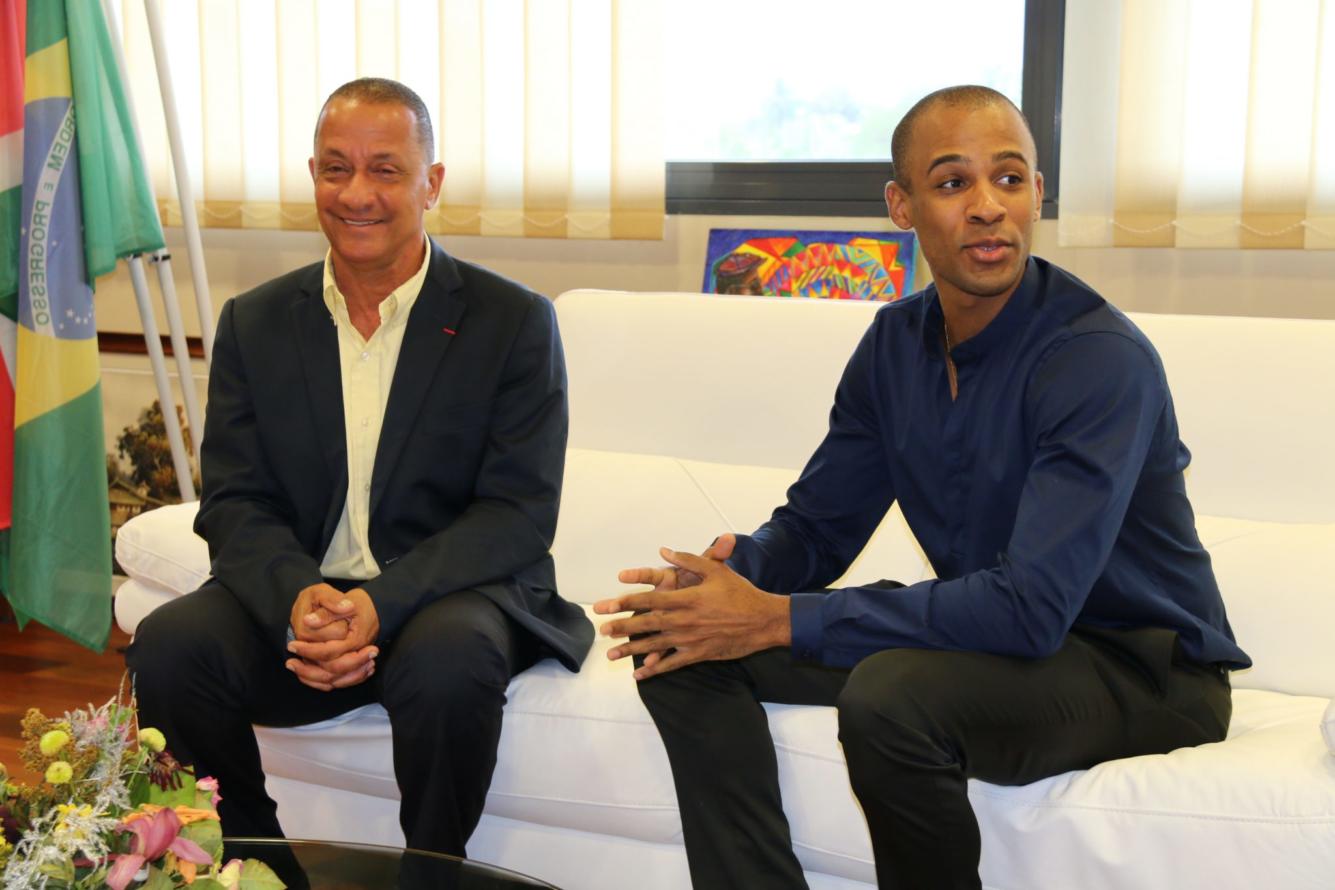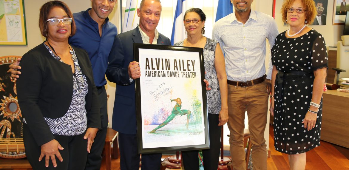 En présence de sa 9ème vice-Présidente déléguée à la Culture, au patrimoine et aux identités, Rolande Chalco-Lefay, Rodolphe Alexandre recevait Yannick Lebrun accompagné de sa mère, de la Présidente de l’Adaclam, Jeanine Vérin et de Keita Stephenson. Ils ont pu échanger notamment sur ses dernières représentations, ses futurs projets, ou encore son souhait de voir un jour la compagnie Alvin Ailey se produire en Guyane.