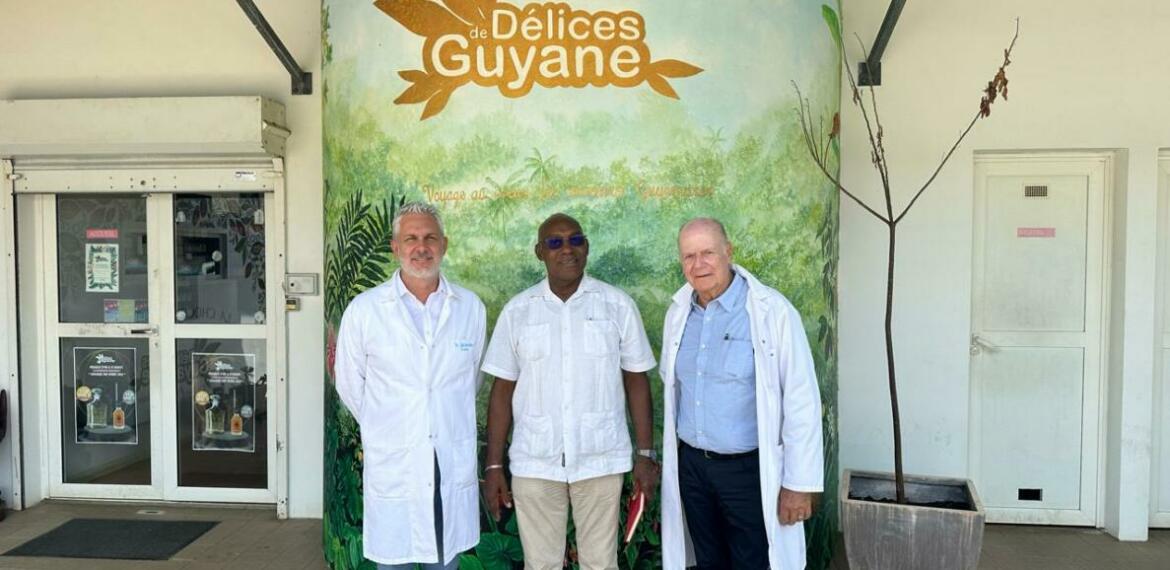 Lucien Alexander, élu territorial délégué au budget et à la fiscalité est allé à la rencontre de Bernard Boulanger, fondateur et président de Délices de Guyane et Laurent Mirabel, Directeur de l’entreprises.
